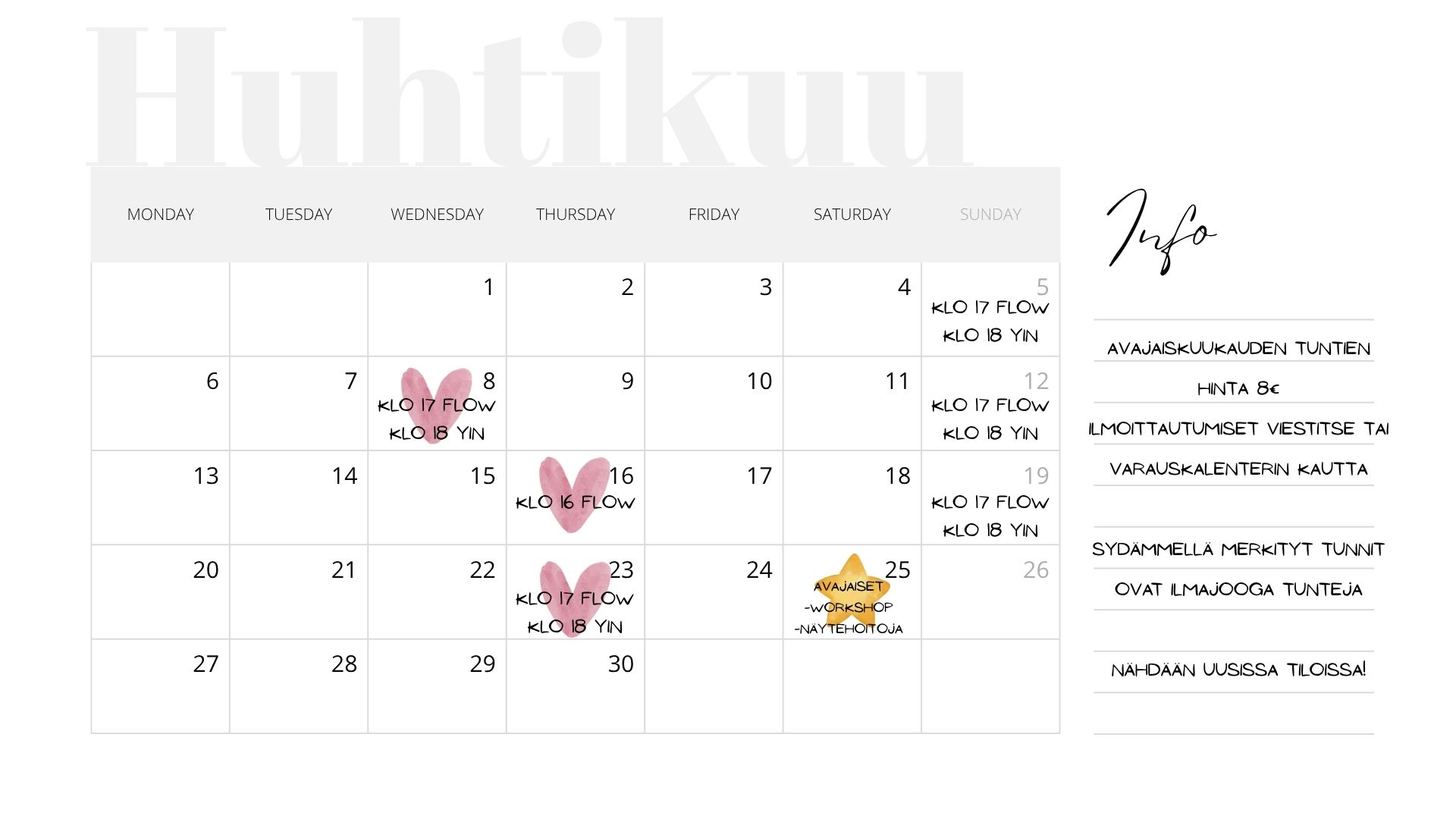 Tervetuloa siis aloittamaan tai jatkamaan joogamatkaasi sekä hoitamaan kehoa ja mieltäsi.